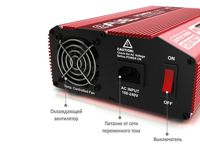 Інтелектуальна система охолодження з активним вентилятором гарантує, що блок живлення не перегріється навіть при повному навантаженні, а рідкокристалічний дисплей дозволяє вам відстежувати поточний струм і напругу, що робить процес заряджання зручнішим та безпечнішим.