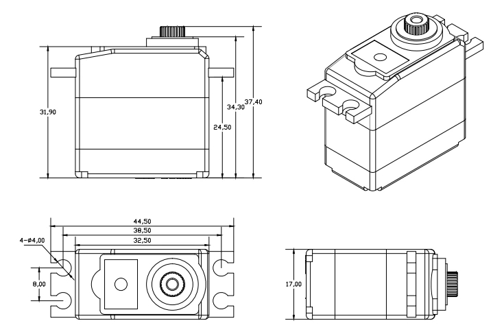 З цим надійним та продуктивним сервоприводом ви зможете досягти нових висот у своєму хобі. Він забезпечить точність та швидкість, необхідні для успішного керування вашими моделями. Замовте зараз і відкрийте нові горизонти у світі радіокерованих моделей!