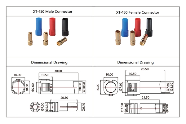 Коннектори AMASS XT150 Female - це ідеальний вибір для професіоналів та любителів, які працюють з електродвигунами та силовими контролерами. Ці конектори забезпечують надійне з'єднання, здатне витримувати значні навантаження, що робить їх незамінними в різних сферах застосування.