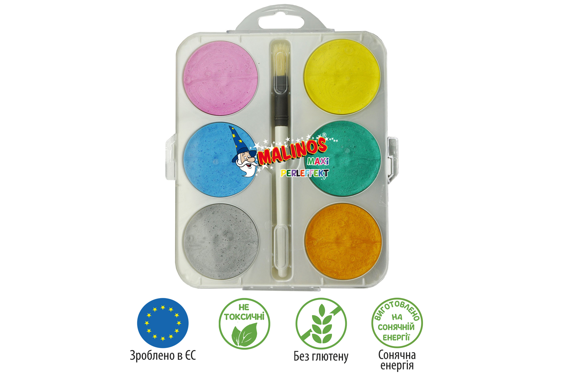 Крім того, акварельні фарби MALINOS є безпечними для здоров'я дітей, що є важливим аспектом для батьків. Вони не містять токсичних речовин та підходять для дітей з 3 років. Кожна упаковка відповідає суворим стандартам якості та безпеки, встановленим у Євросоюзі.