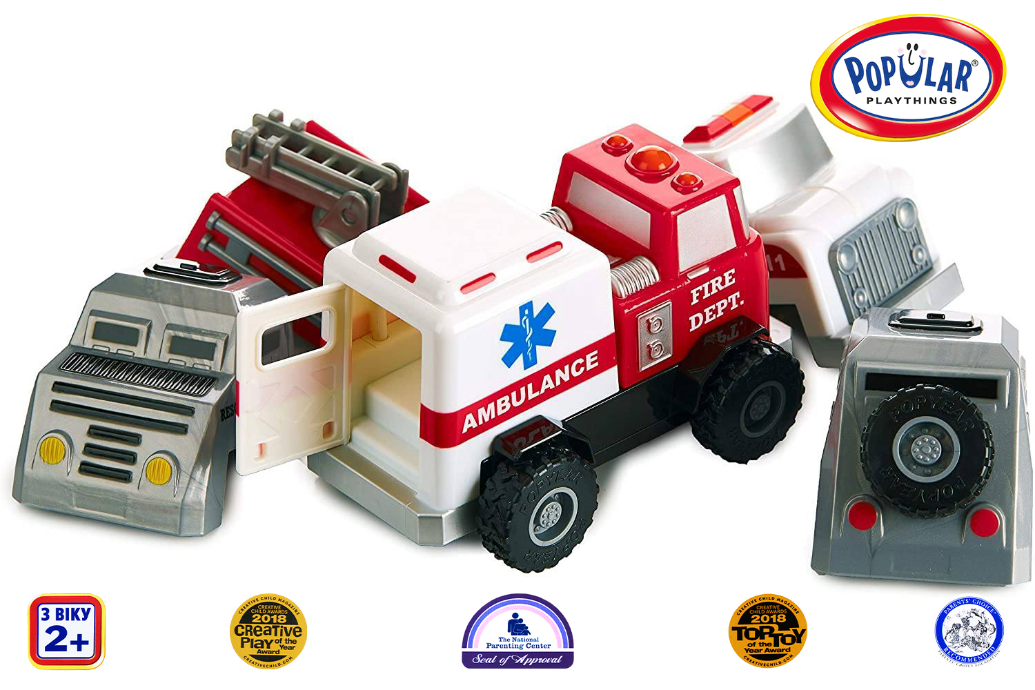 Дитячий конструктор Popular Playthings машинка поліція, швидка допомога, пожежна — іграшка для дітей від 1 року, що розвиває